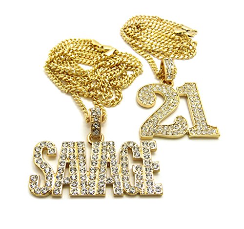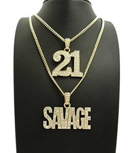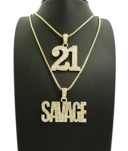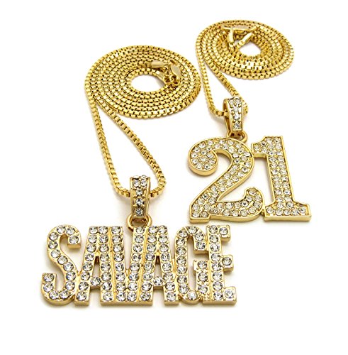 -. Title : NEW ICED OUT 21 & SAVAGE PENDANT & BOX/CUBAN/ROPE CHAIN HIP HOP NECKLACE SET