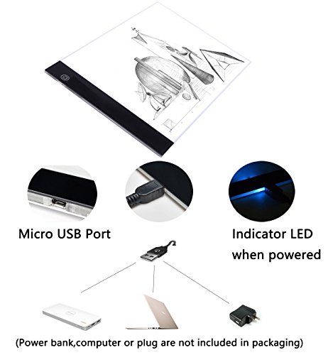 USB Powered: Comes with a USB cable, so you can use the light tracer box anywhere. Working Voltage:DC 5V,Rate Power: 1.5W. Color temperature: 7500K for "COMFORT WHITE".