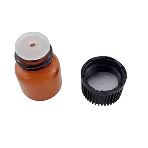 Etmact 24pcs 1ml(1/4 dram) Amber Mini Glass Vial Bottle With Orifice Reducer And Cap, For Journey, Essential Oils And Chemistry Lab Chemicals.