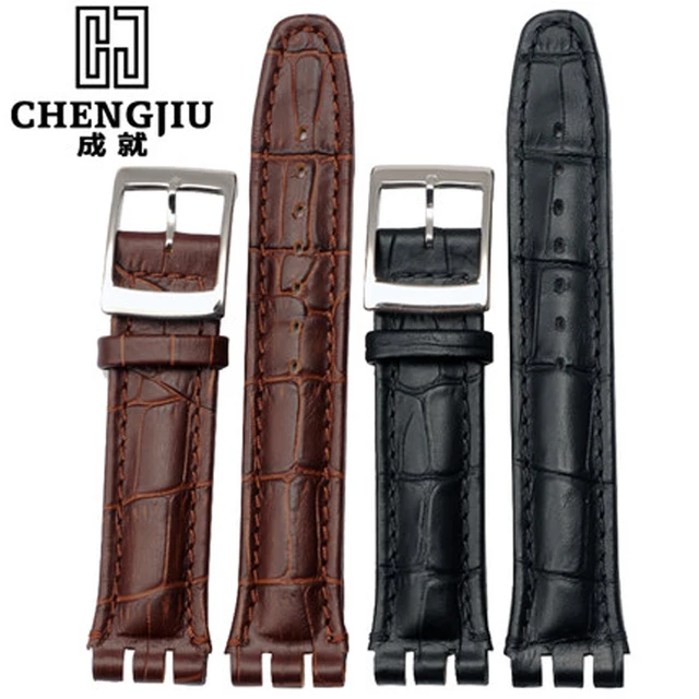 | [해외]정품 가죽 시계 스트랩 swatch 시계 악어 가죽 손목 밴드 여성 시계 밴드 스트랩 남성 17/19/21/23 미리메터 |
