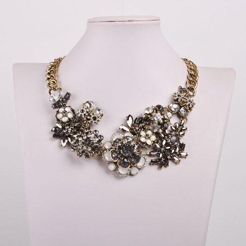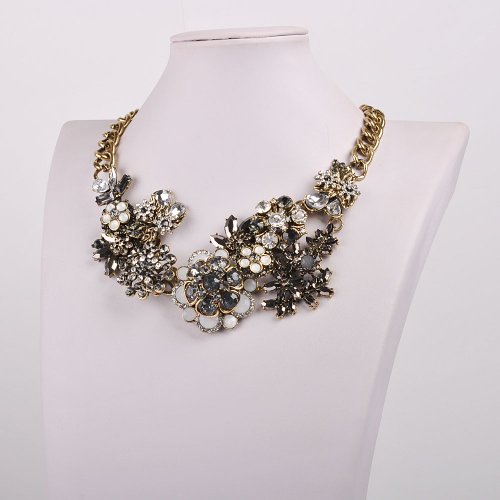 - Title : Jane Stone Flower Frontal Statement Black Party Bloom Lady Chunky Jewelry (Fn0447)