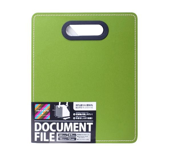| 表紙に軽くて丈夫な発泡PPを使用した自立するドキュメントファイルです。ななめカットのポケットで収納物が探しやすくなっています!! |