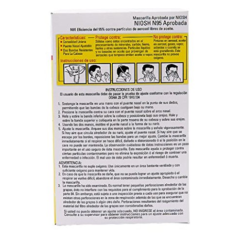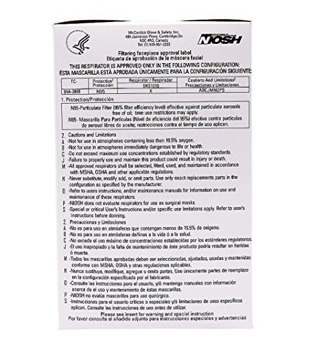 -. Feature : NIOSH approved for N95-particulate filter protection, 95% efficient against particulate aerosols free of oil. / Non-valved, disposable respirator. / 2 heavy duty headstraps and adjustable nosepiece ensure a better fit and a secure seal. / Lightweight and comfortable. / 20 respirators per pack.
