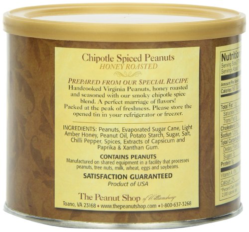 The Peanut Shop of Williamsburg Chipotle Spiced Honey Roasted Peanuts, 11-Ounce Tin