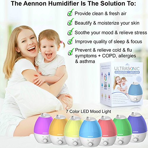 Aennon Ultraschall-Luftbefeuchter, 2,8 Liter Betriebsdauer 20 Stunden, Raumluftbefeuchter mit Duftzerstauber, Diffuser fur atherische Ole, gerauschlos, 7 LED-Farben und automatische Absch