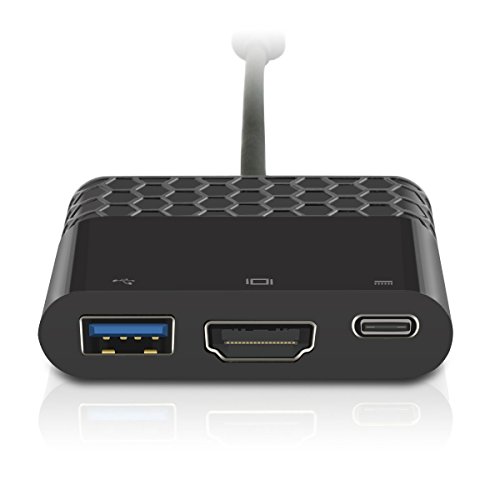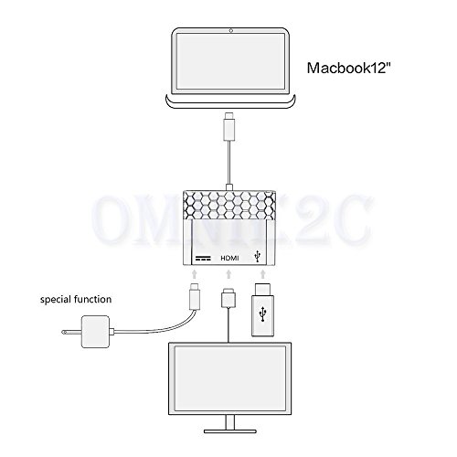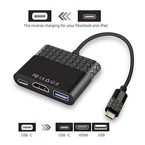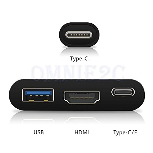 Tigerhu TYPE-C to C+HDMI+USB3.0 Adapter,4K2K Multiple USB 3.1 Type C to HDMI/USB 3.0/USB-C Charging Port for Notebook 12-Inch, Dell, or Other USB-C Laptop