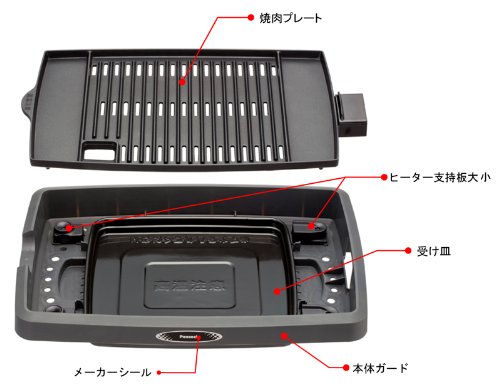 크기:본체/W460×D308×H79mm(코드 포함하지 않아)W516×D308×H79mm(온도 조절기 포함한다)고, 야키니쿠(한국식 갈비) 플레이트/W405×D250×H40mm