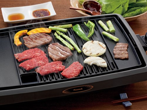 ■하이 파워1200W,고온230℃.기름을 떨어뜨린다,연기의 출어려운 구멍난 플레이트를 채용 하고 있습니다. 플레이트는 뗄 수 있어 흘려 보내어 씻이 가능합니다.온도 조정 기능 첨부 와.수 받침접시(인수는 법랑제입니다.■소비전력:1200W■본체크기:W460×D308×H79mm■본체 질량:약2.3kg