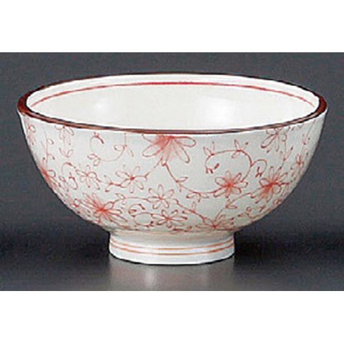 원본상품명: 飯碗(磁器) 芽吹唐草赤茶碗(?量) [118 x 57mm] 和食器 料亭 旅館 ?食店 業務用