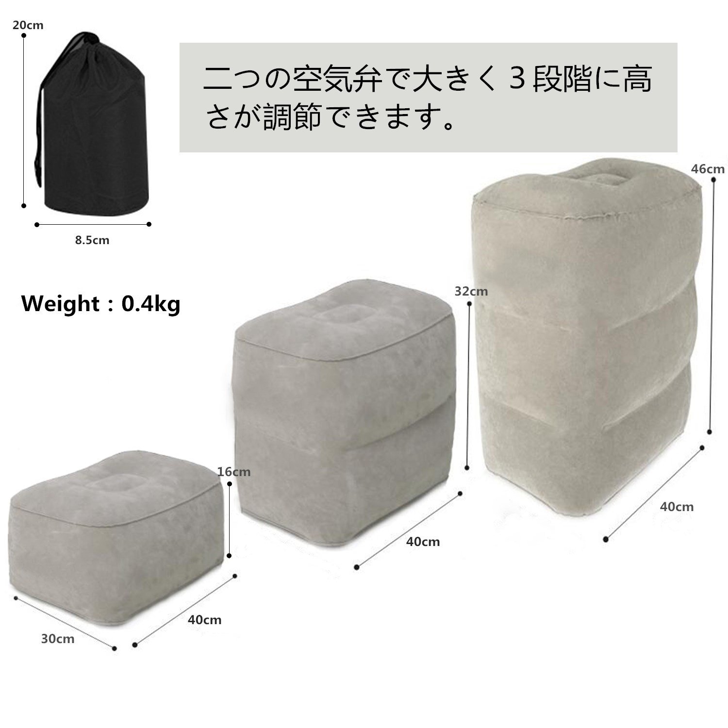 1. Height can be adjusted in three stages largely with one air valve.