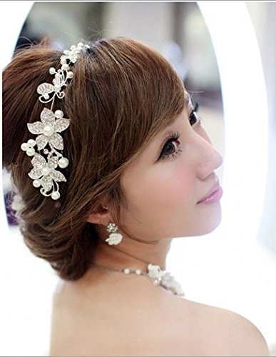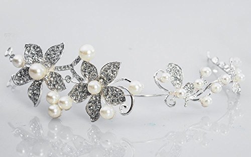 BECUTE Beautiful and Elegant Simulated Pearl Crystals Bridal Wedding Bridal Headband Tiara
