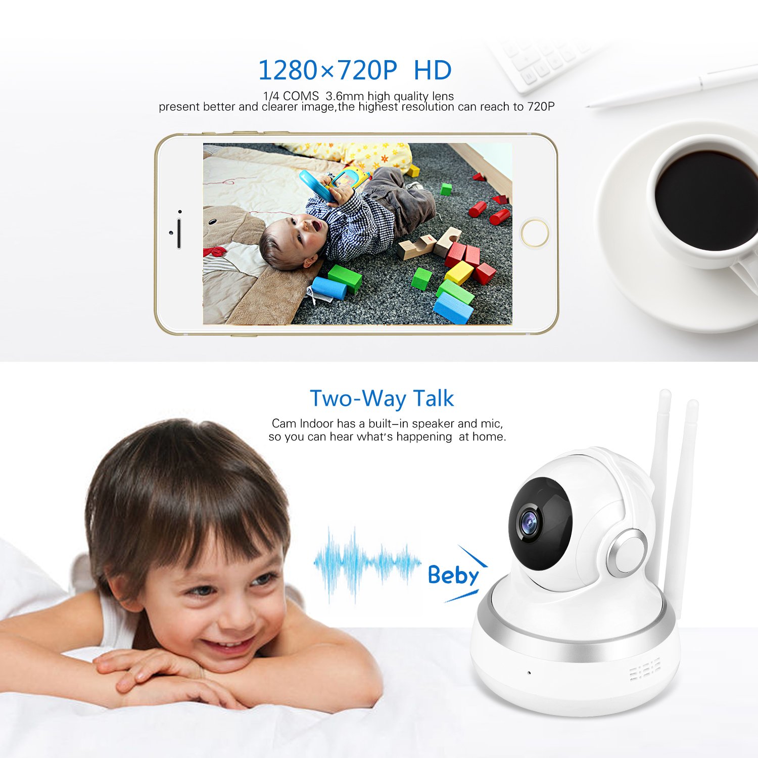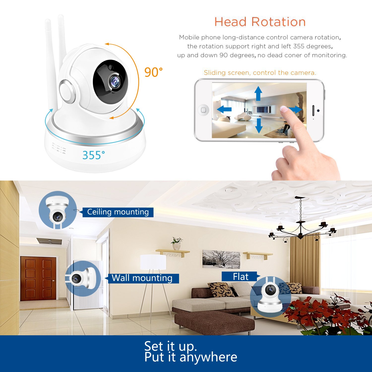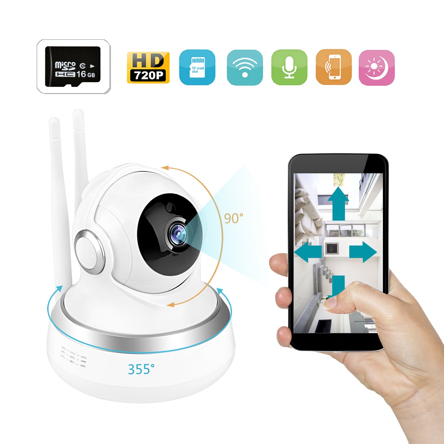 Night visibility of infrared: about 30 feet network: WIFI (2.4 Ghz) & Ethernet; net conversion and inclination: movement 355 °, inclination 100 ° iphone, ipad, android Intelligent equipment