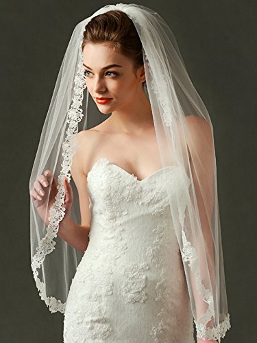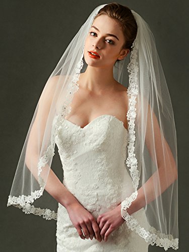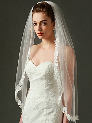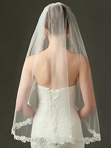 Binding : Apparel Product Description Material: Tulle Embellishment: Lace, beads Length: Fingertip Length Tier: 1 Tiers Shown Color: Ivory Size: 36" x 69" Comb: Yes, comes with metal comb Package Include: 1 x veil
