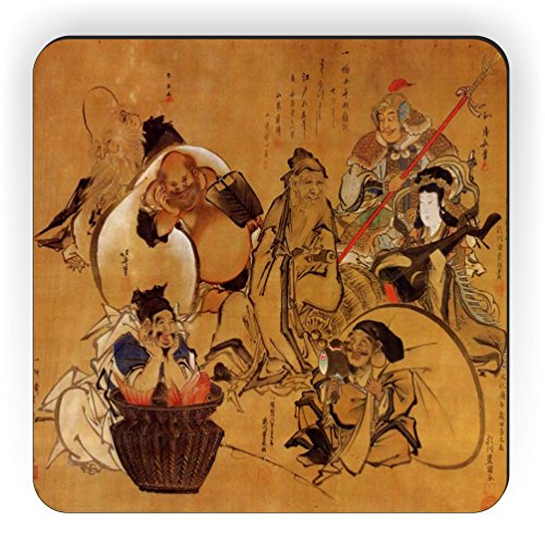 Rikki Knight Katsushika Hokusai Art Seven Gods of Fortune Design Square Fridge Magnet