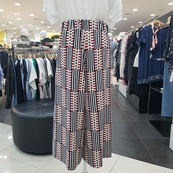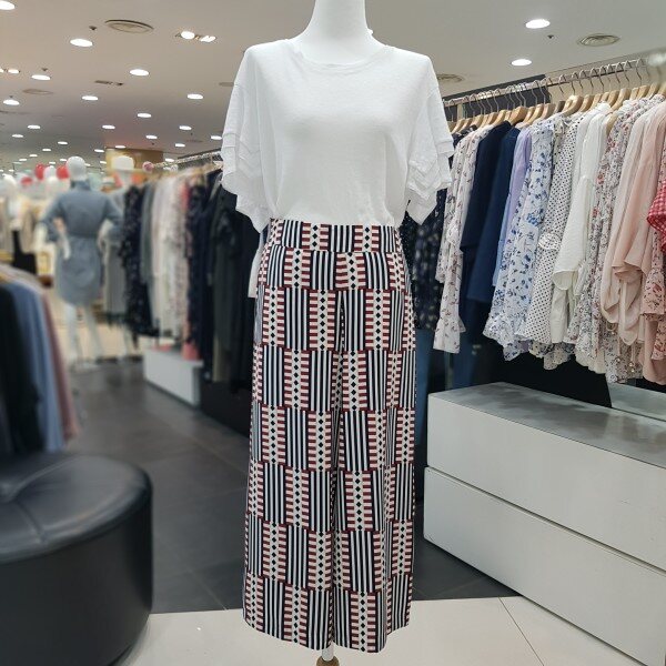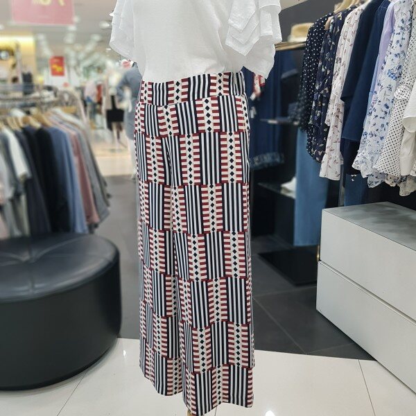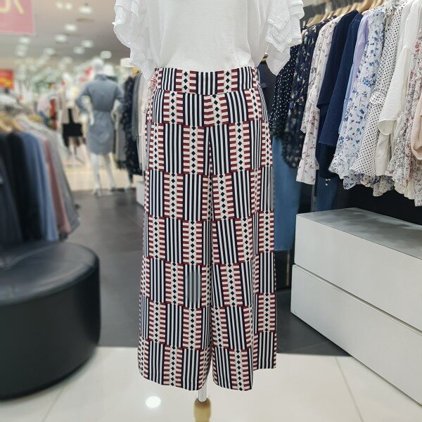 기하학 패턴의 시원한 컬러감의 세련스러운 와이드 팬츠 입니다 허리부분 밴딩 처리로 편하게 착용 가능한 제품 입니다다양한 상의와 스타일링 하기 좋은 아이템 입니다