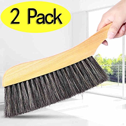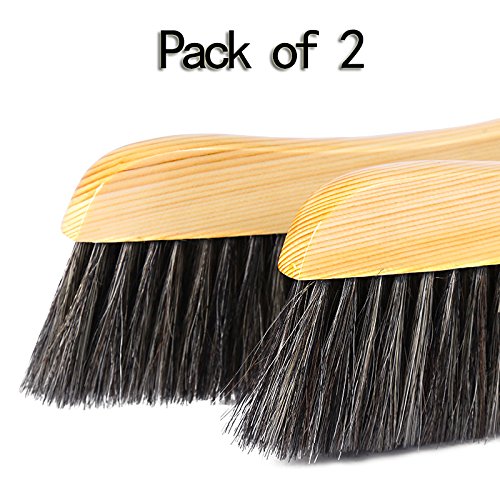 Soft Cleaning Brush -2PCS Wood Handle Hotel Family Clothes Dust Hair Sofa Bed Sheets Bedspread Carpet Cleaning Natural Bristle Brush Wooden Large for Home Office and Car Set of 2