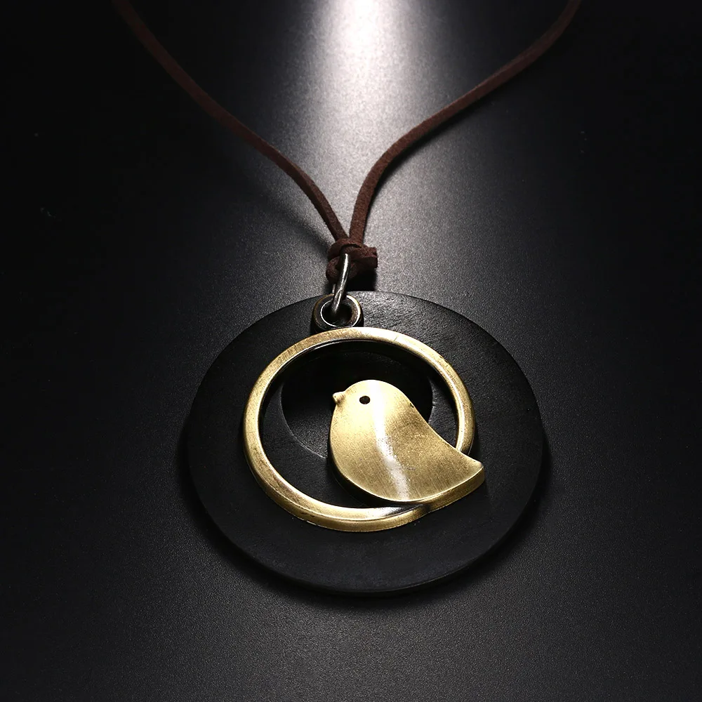 Model Number:Bird Wooden Bead pendant vintage Long necklace