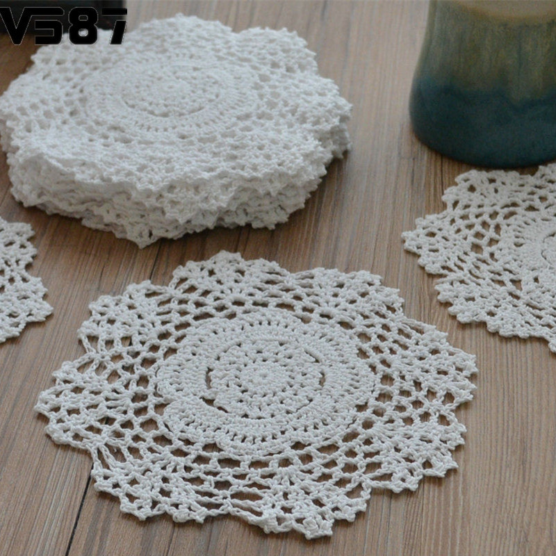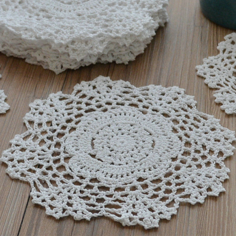 Dozen White 8" Round Hand Floral Coasters Lot