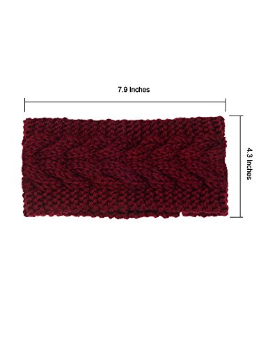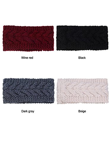 TecUnite 4 pieces chunky knit headbands winter braided headband ear warmer crochet head wraps for women girls, 4 colors Make your life colorful: Each set of headbands has 4 colors, they can match with different types of clothes and easy to satisfy your needs, you can choose the color according to your interests every day, can make your life colorful. Knitted headbands: The headband is knitted, which is elastic and soft, very stretchable, the wide headband can bring warm to you easily without hurting your hair, especially design for winter. Wide ranges of usage: They can serve as headbands or pull them down over ears to keep them away from cold, suitable for daily wearings and different occasions, such as costume parties, Christmas parties, ceremonies and so on, also provide as a gift to your friends and families. Specifications: Width (flat size): 4.3 inches/ 11 cm Length (flat size): 7.9 inches/ 20 cm Colors: black, wine red, dark gray and beige Quantity: 4 pieces Package includes: 1 x Black knitted headband 1 x Wine red knitted headband 1 x Dark gray knitted headband 1 x Beige knitted headband Note: The color may look slightly different due to the monitor. 0
