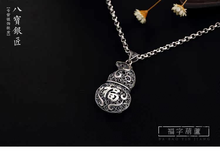 八宝银匠S990足银手工掐丝福字葫芦吊坠日韩版复古做旧女士款挂坠