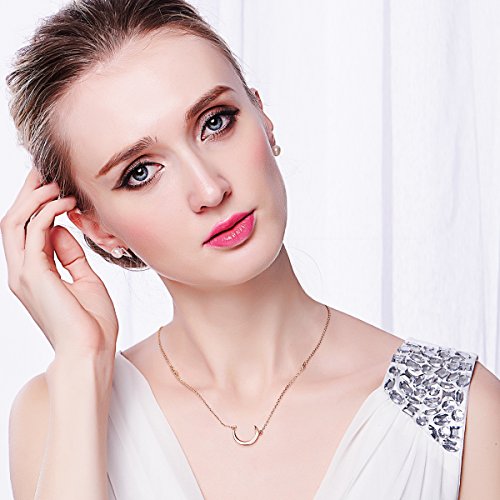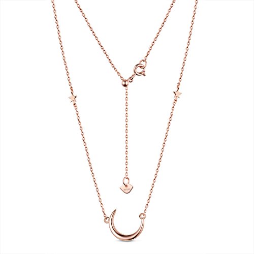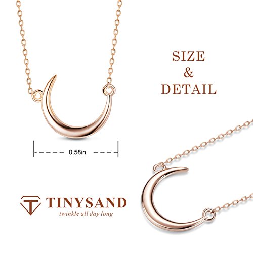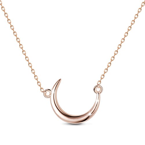 This 925 sterling silver necklace featuring crescent design and suspended from delicate cable chain.