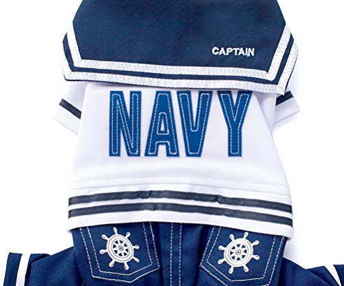 -. Title : ZUNEA Small Dog Clothes for Female Male Navy Captain Dog Four Legged Jumpsuits Sailor Costume