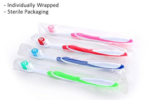 24 Individually Packaged Large Head Medium Bristle Disposable Toothbrushes - Multi Color Pack - Convenient & Affordable