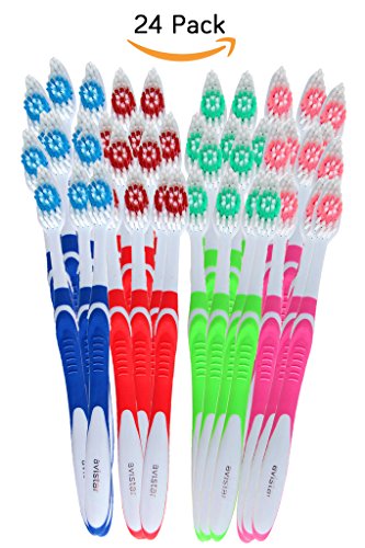 24 Toothbrushes In Multiple Colors - Not only are you getting quality and quantity, but you also get variety. Avistar brushes come in four beautiful colors: Red, Blue, Green & Pink!