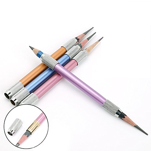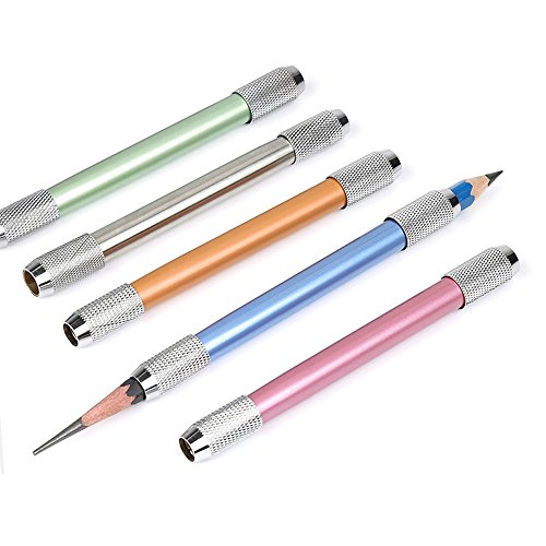 Adjustable Dual Head Aluminum Pencil Lengthener Extender Holder (Pack of 5, Assorted Colors)