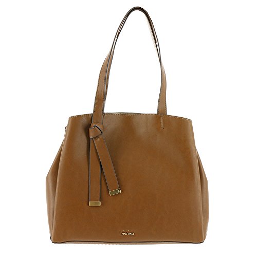 Front knot strap detail with Nine West letter bar logo on bottom front of tote.