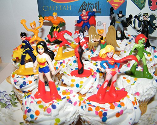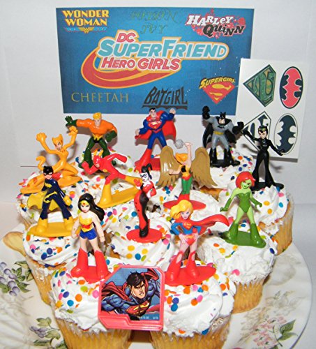 DC Super Friend Hero Girls Deluxe Mini Cake Toppers Cupcake Decorations Set of 14 with Figures, a Sticker Sheet and Toy Ring Featuring Wonder Woman, Supergirl, Batgirl and More!