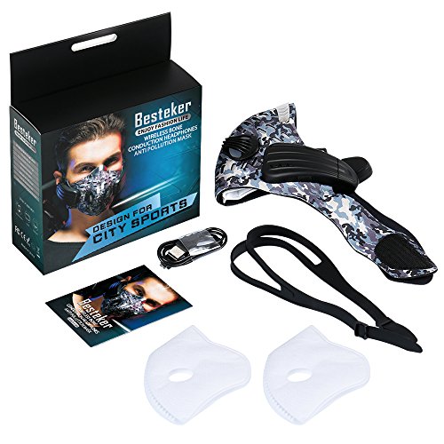 Besteker Wireless Rechargeable Bluetooth 4.0 Bone Conduction Headphones Anti Pollution Mask Handsfree Headset for Cycling Sports & Cosplay