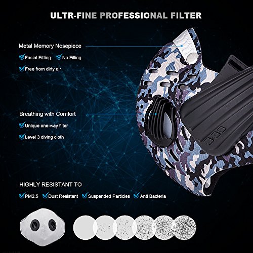 PROFESSIONAL FILTER MASK: Ultra-fine filter, one-way filter valves and good breath ability make it a professional filter mask that can filter out PM2.5, suspended particles, haze, dust, exhaust gas, and other particle with minimum diameter of 3 microns.