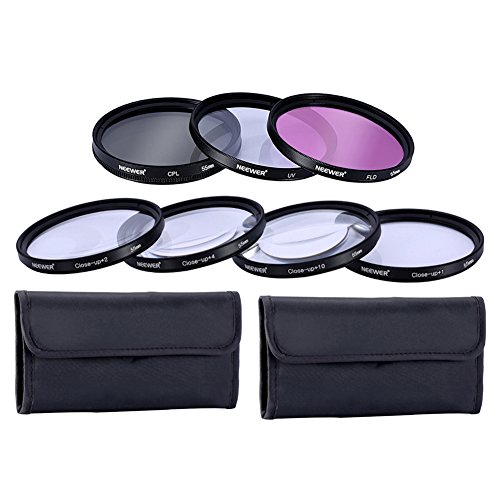 Neewer® 7 Pieces 55mm Filter Kit - Four Pieces Macro Close-up Filters(+1, +2, +4, +10) + UV, FLD and CPL Filters with Filter Carrying Pouch for Sony A100 A200 A230 A300 A330 and ANY 55mm Camera Lens