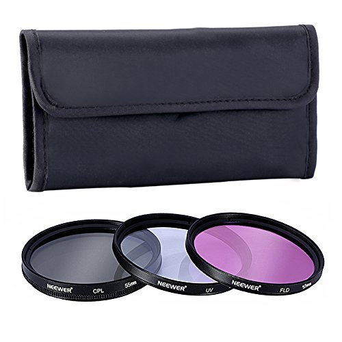 The 55mm filter kit(UV, CPL, FLD)fit any camera lens with a 55mm filter thread. High quality metal and glass construction.