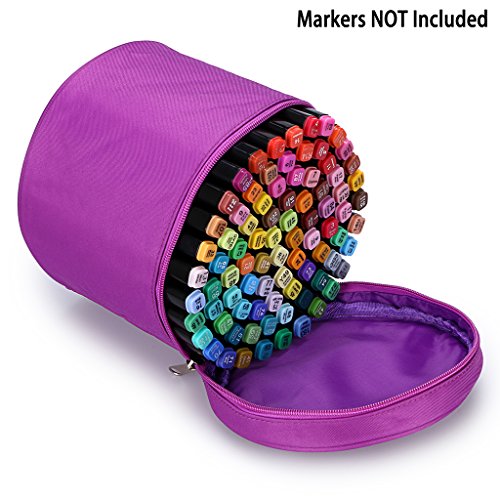 BTSKY Multifunction Marker Case -- Zippered Canvas Marker holder Copic Marker Organizer Pen Bag Pencil Case Stationary Storage for 80 Markers, Purple