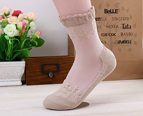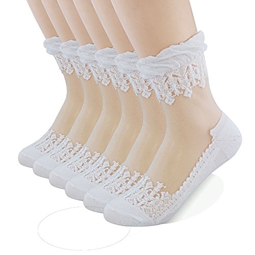 -. Title : TLY Womens 6 Pairs Ultrathin Transparent Lace Elastic Short Socks