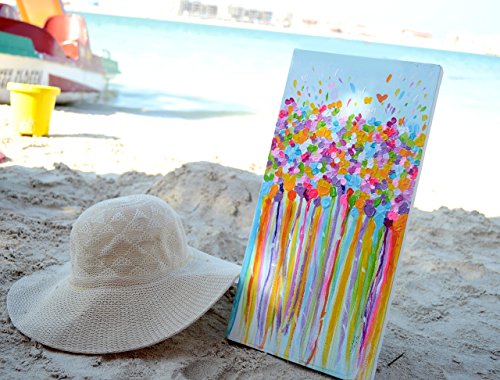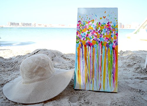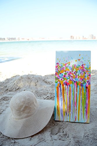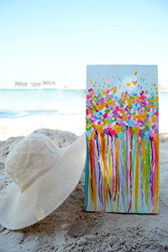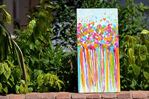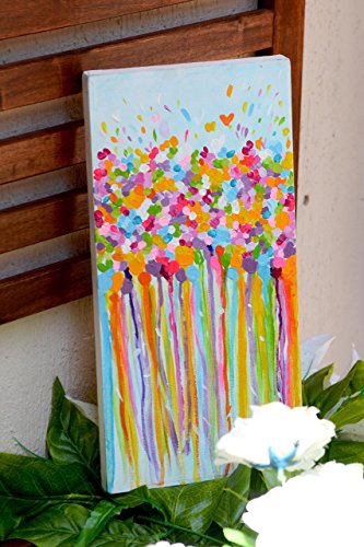 This vibrant abstract is bursting with bright and beautiful blooms, and shimmering colors!! It's painted on a 20"x 40" cm canvas with a 2" cm wrapped finished edge- ready to hang! It's feminine and joyful, with so much positive energy- it feels absolutely inspiring and alive. It has multiple lovely effects, depending on where you hang it. it will look great whether you hang it in your Bedroom or your living room. And if not for you, it will be a great gift for you newly wed friend or maybe just a simple housewarming gift.