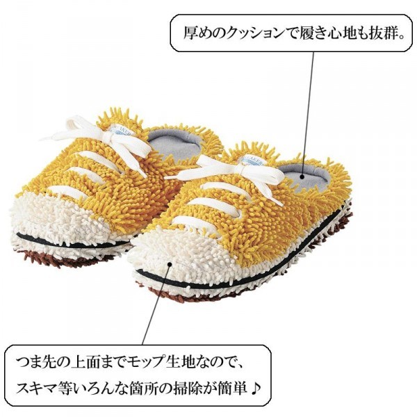 | ありそうでなかったスニーカーのカタチのモップスリッパ。ユニセックスでカジュアルなデザインは男性へのプレゼントにもぴったりです。モケモケのマイクロファイバーだから、歩くだけでホコリをキャッチ。 |