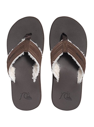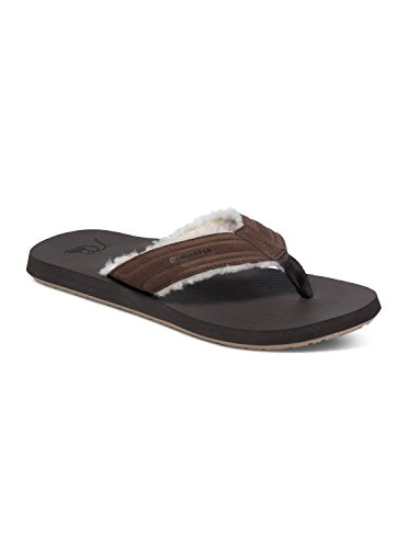 Studio : Quiksilver Publisher : Quiksilver Binding : Shoes Product Description Monkey Fluff Sandals for men. Features include: embossed full grain nubuck upper, super soft sherpa lining, finely woven nylon toe post, quad-density contoured footbed, heel cup arch support, cushioned top layer for extra comfort, medium density 2nd layer for added cushion with support to keep your foot from fatiguing, third firmer layer for adhesion durability, repeating Quiksilver logos in the gum rubber outsole and a composition of Upper: 100% Leather, Outsole: Rubber. 0