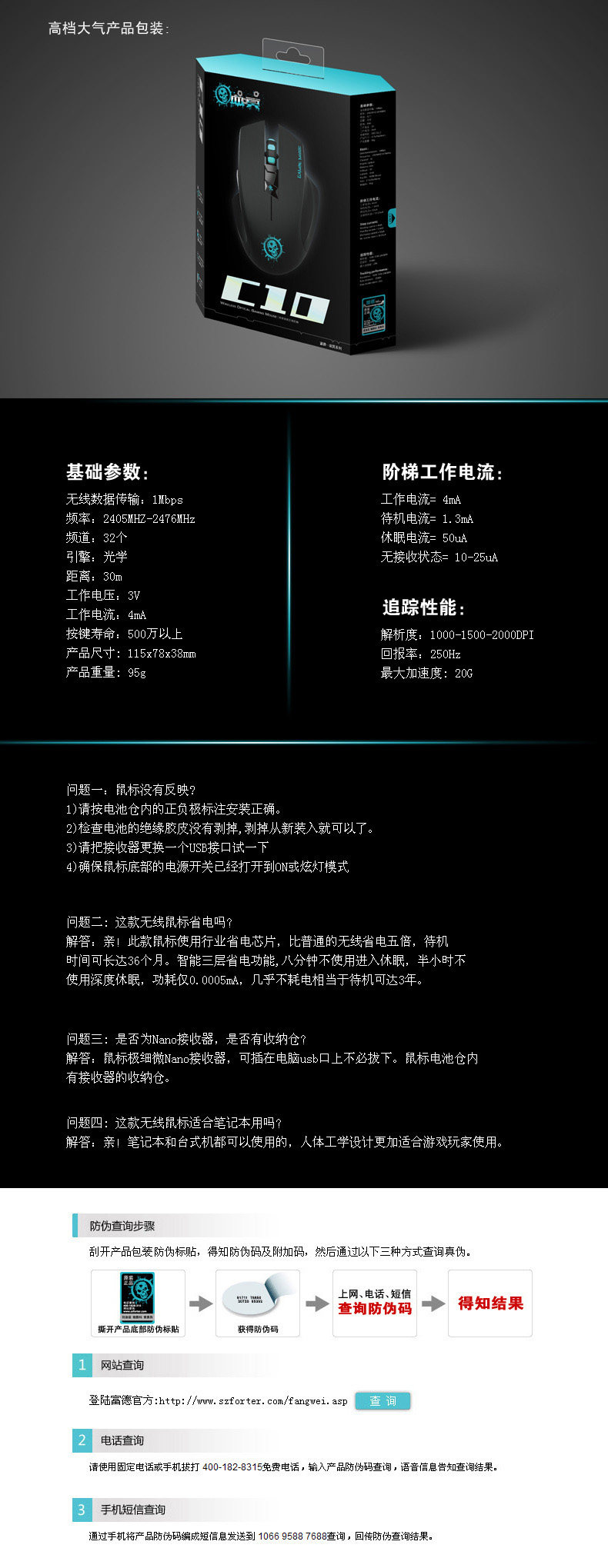 富德C10无线鼠标 笔记本台式电脑无线鼠标 省电 游戏无声静音