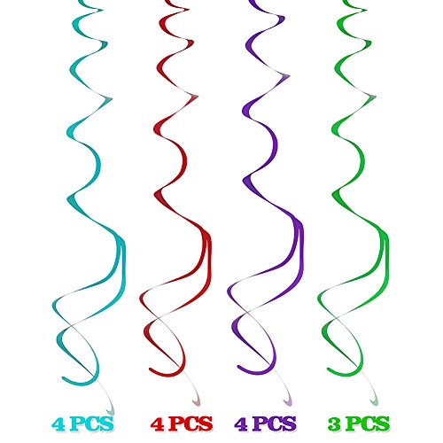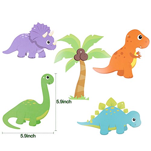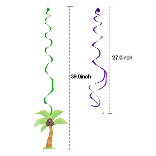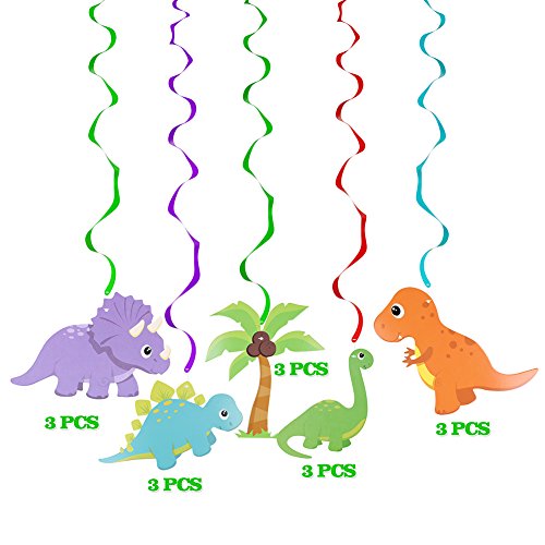 -. Feature : DINOSAUR-THEMED METALLIC SWIRLS: This set of Dino-themed metallic party decoration foil swirls contains 30 pieces in total, featuring palm trees, Triceratops, T-Rex, and Bracchiosaurus in red, green and blue, respectively. Reusable dinosaur themed party decorations are made of plastic and durable paper stock. 15PCS hanging swirl decoration features a cut-out of dinosaurs mixed with metallic whirls. / EASY ASSEMBLY: Hang them from the ceiling, tree branches in your backyard for outdoor parties, or in a doorway using the attached hook on the top. Anywhere you like. / DINOSAUR ATMOSPHERE: Hang from walls and the ceiling to add style to your party, and coordinate with other dinosaur themed party supplies and solid colored party decorations to create a completely festive atmosphere / DIMENSION: Hanging decorations extend to approx.36" long. / DINOSAUR PARTY FAVOR: These metallic foil swirl decorations are perfect for kid's birthday parties. Mix and match with other party favors or photo booth props to really get the party going!