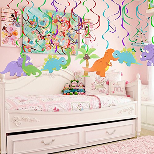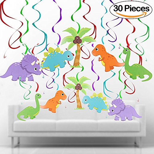 -. Title : Onshine 30 Count Dinosaur Hanging Swirl Decorations - Dino Fossil Jurassic T-REX Birthday Party Supplies Ornaments Hanging Dino Decor Whirls for Kids