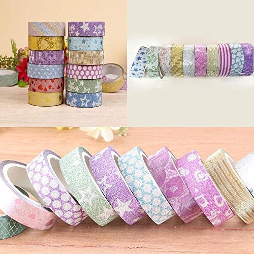 -. Title : Hestio DIY Self Adhesive Glitter Washi Masking Tape Sticker Craft Decor 15mmx3m