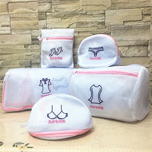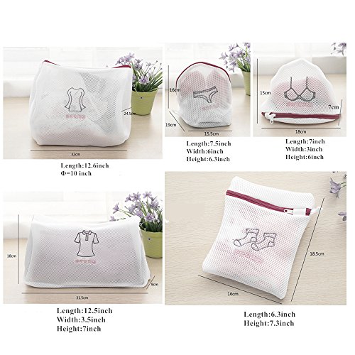 SET OF 5 MESH LAUNDRY BAGS-3D DOUBLE PROTECTIONT EMBROIDERY TAG FOR LAUNDRY,BLOUSE, HOSIERY, STOCKING, UNDERWEAR, BRA AND LINGERIE, TRAVEL LAUNDRY BAG,WASH BAG