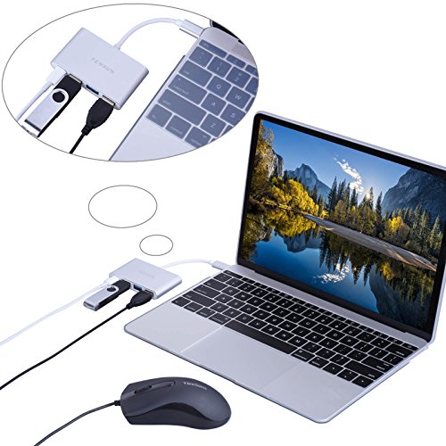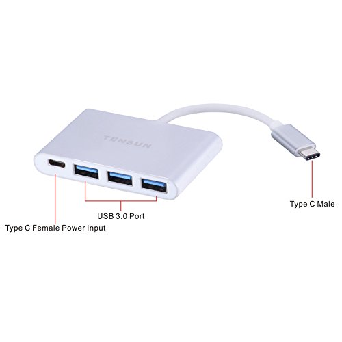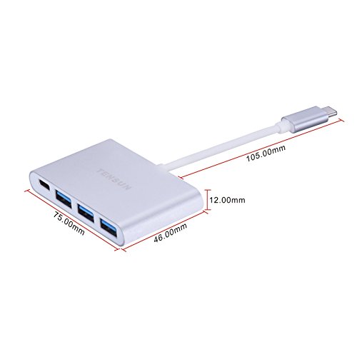 Tensun USB-C Hub USB 3.1 Type C to 3-Ports USB 3.0 HUB with Type C Recharging Port for the MacBook 2015 and ChromeBook Pixel