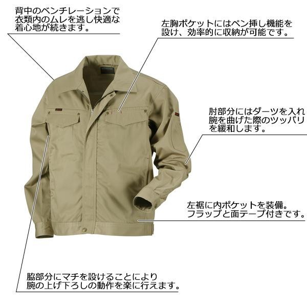 しわになりにくく丈夫なT/C素材を使用し、織り目をヘリンボーン(杉綾織り)にすることで無骨になりすぎず、いつもと違う雰囲気で着こなせます。肘のダーツや脇のマチなどによって、腕の上げ下ろしもラクラクです。背中のベンチレーションで通気性も確保でき、快適なワークシーンをサポートします。 |