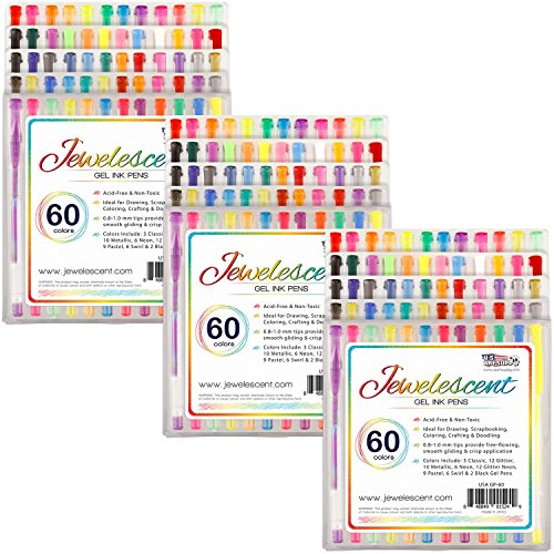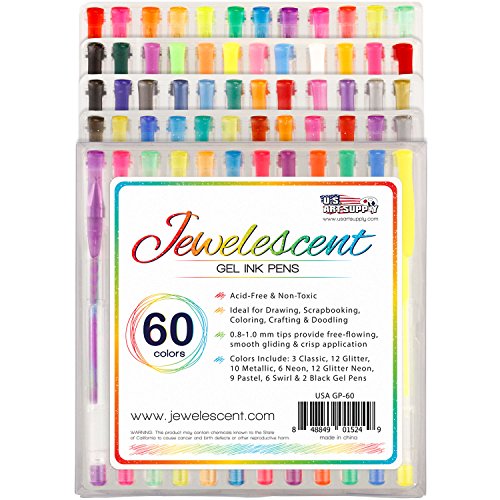 -. Binding : Office Product -. Brand : Us Art Supply -. Label : US Art Supply -. Manufacturer : US Art Supply -. ProductGroup : Office Product -. ProductTypeName : WRITING_INSTRUMENT -. Publisher : US Art Supply -. Studio : US Art Supply -. Title : US Art Supply® Jewelescent® 60 Color Gel Pen Set - Professional Artist Quality S Gel Ink Pens in Vibrant Colors - Classic, Glitter, Metallic, Neon, Pastel & Swirl Colors - 100% Satisfaction Guarantee