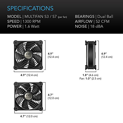 AC Infinity MULTIFAN S7-P, Quiet Dual 120mm AC-Powered Fan with Speed Control, for Receiver DVR Playstation Xbox Component Cooling
