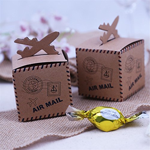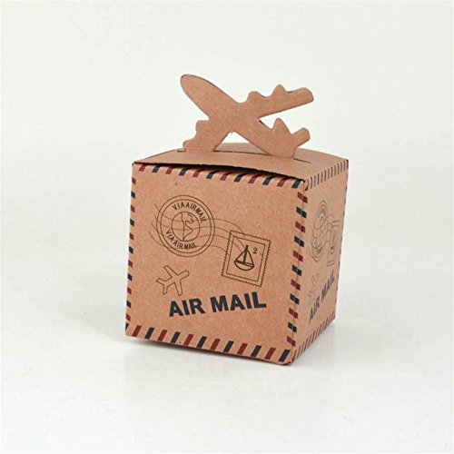 BUYBUYMALL 50Pcs Wholesale Vintage Airplane Shape Party Favor Boxes Creative Brown Paper Candy Gift Box